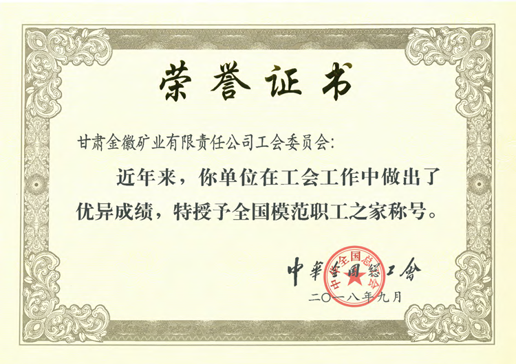 近日,金徽股份工會(huì)榮獲“模范職工之家”榮譽(yù)稱號(hào),這是繼金徽股份榮獲全國首批綠色工廠,入選國家級(jí)綠色礦山名錄之后獲得的又一項(xiàng)國家榮譽(yù)。